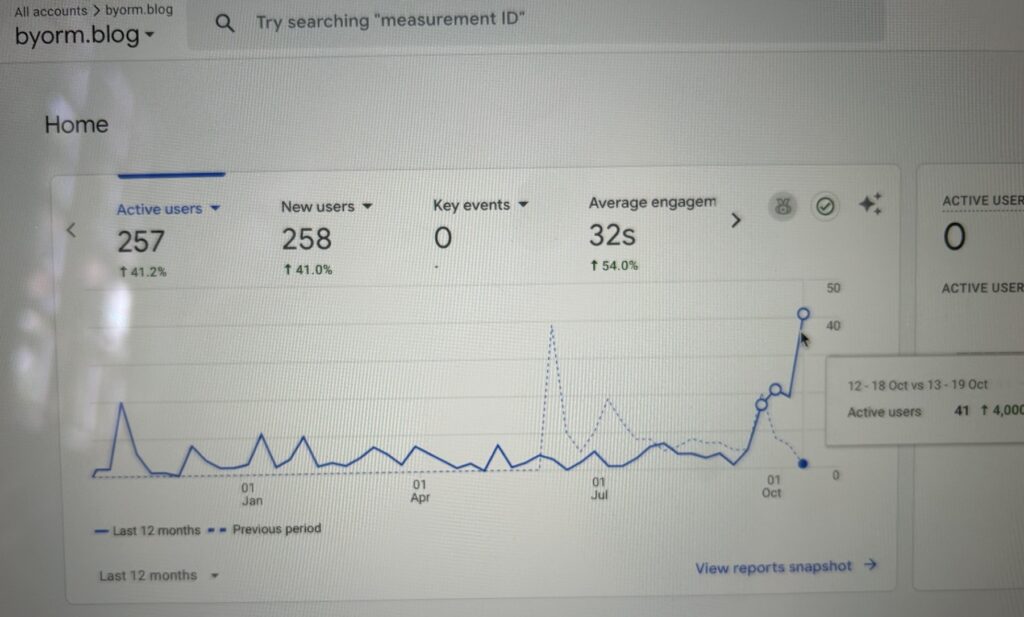 Here is the current screenshot of google analytics on my blog as of October 2025. This shows 2 things.